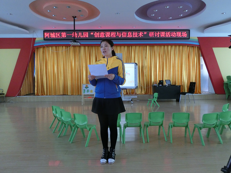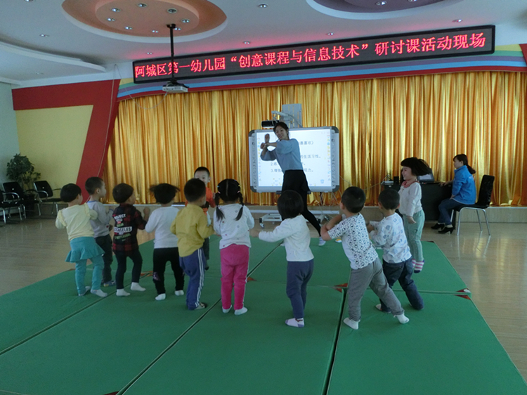 为提高教师专业化成长,体现团队的凝聚力,阿城区第一幼儿园于2015年4月8日、9日两天的时间开展了“创意课程与信息技术”研讨课活动,全园教师参与其中。此次活动是以新引入的《创意课程》如何与信息技术有效融合为切入进行的研讨课。选出了具有代表性的三节教学活动:托班组王伟老师、小班组崔桂香老师、中班组许忠萍老师为代表进行展示。活动采用执教教师说课、上课、组内教师评课三个环节向大家进行完整的呈现。教学活动结束后听课教师进行研讨,最后由姜玉华园长对本次活动做了总结,肯定了老师们成绩的同时抛出了几点建议。