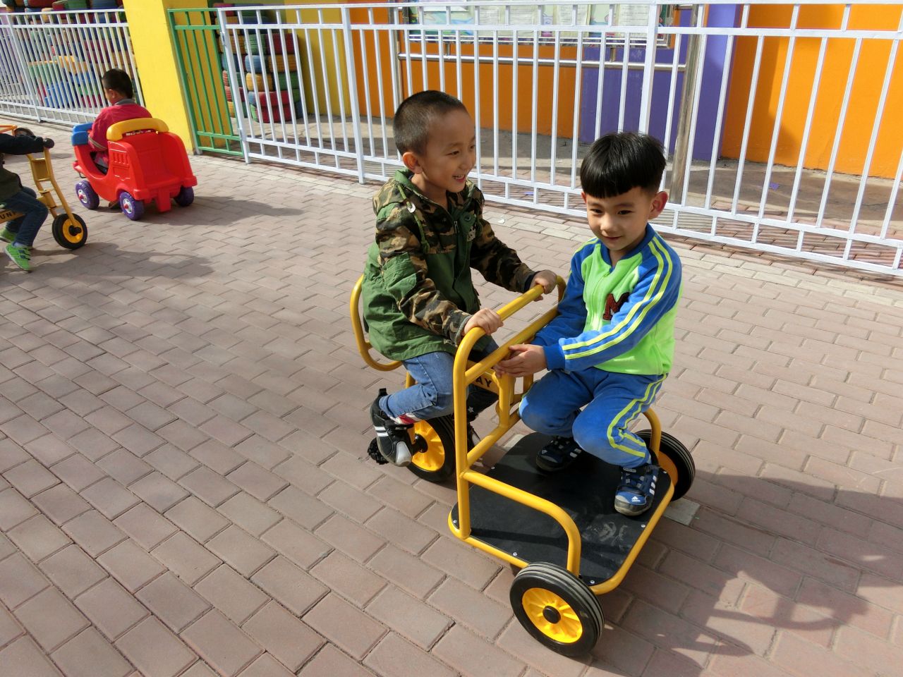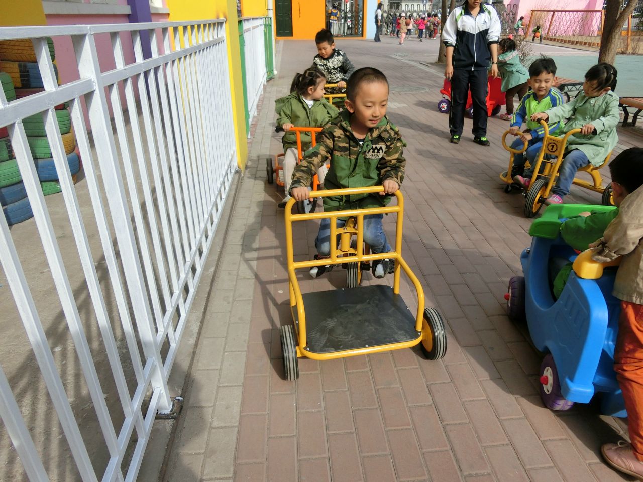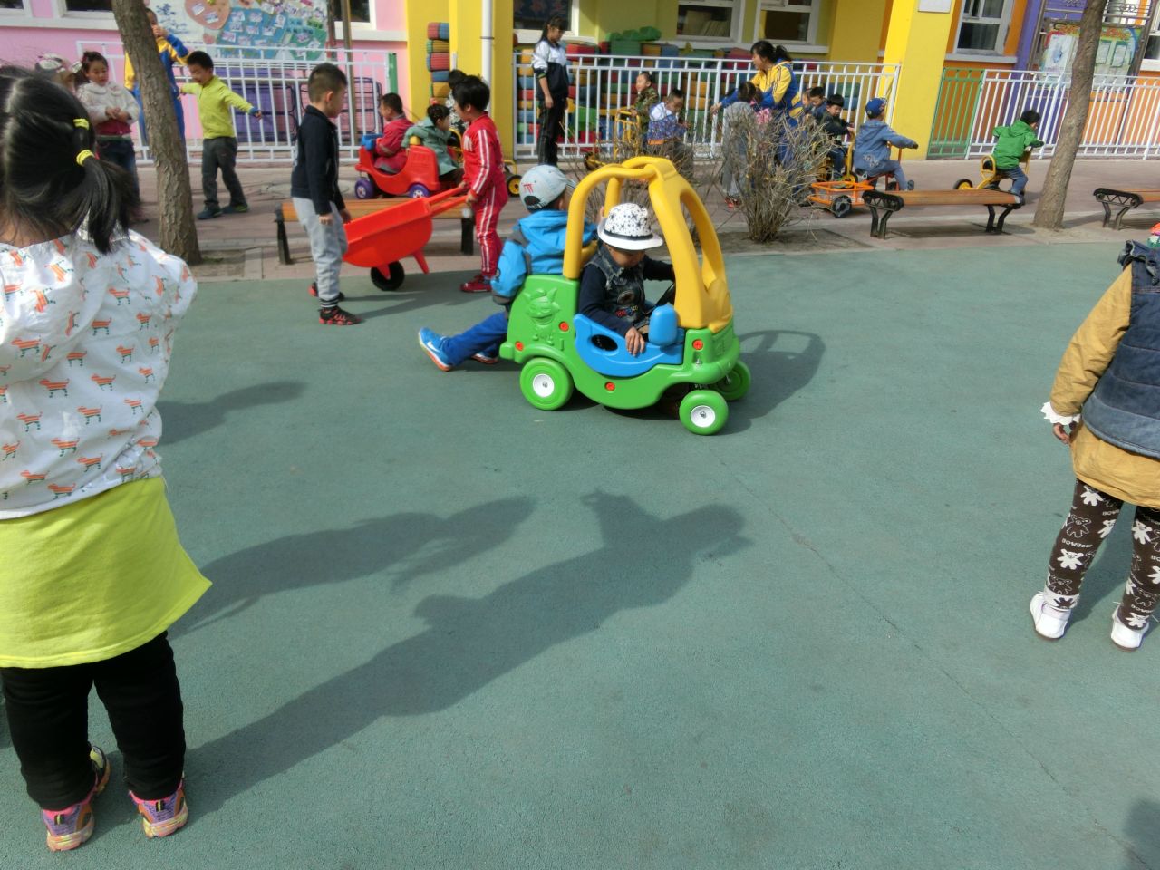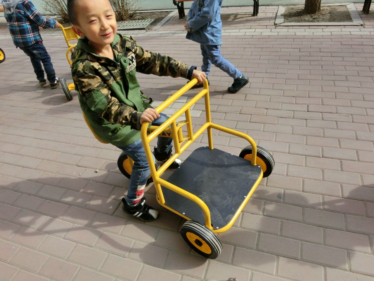 今日我园新进户外器材十余件,供孩子们户外运动时玩耍。