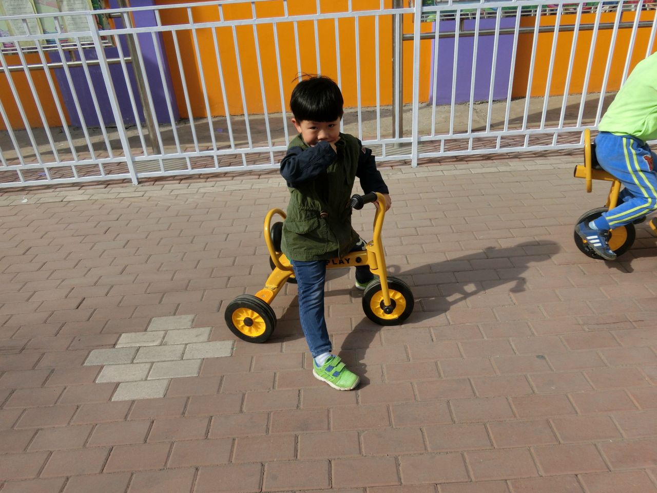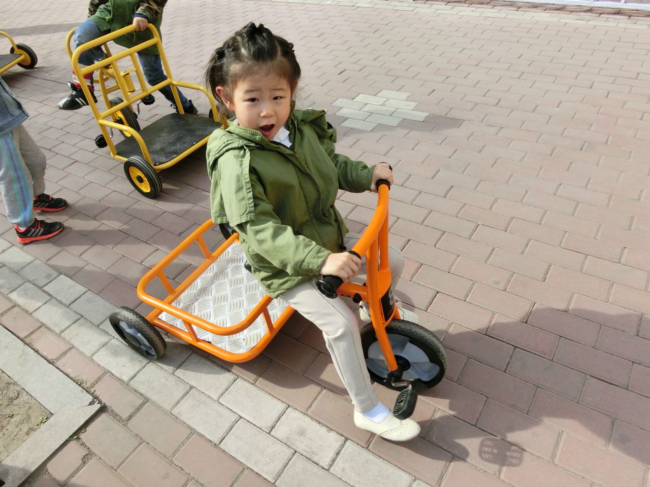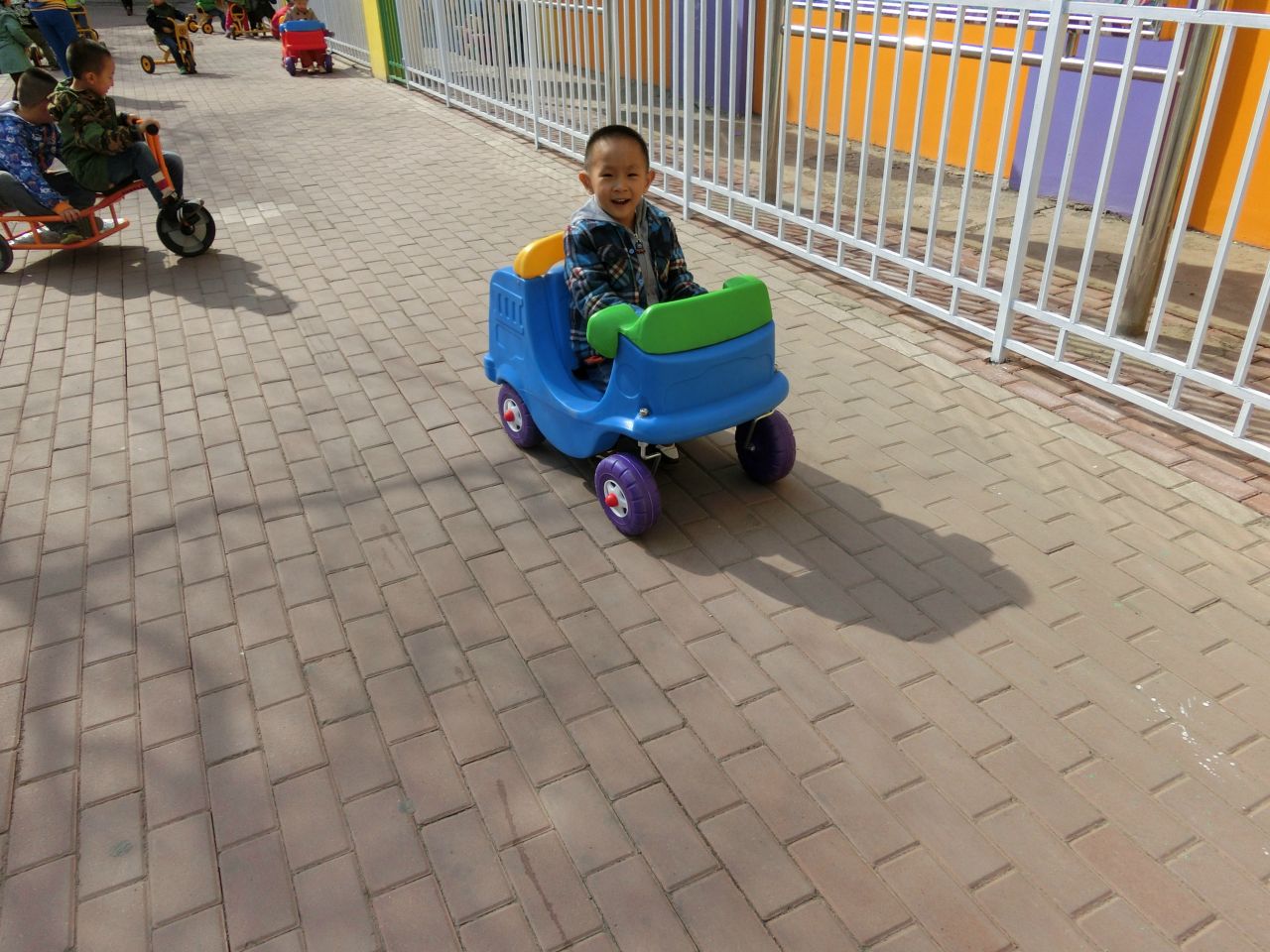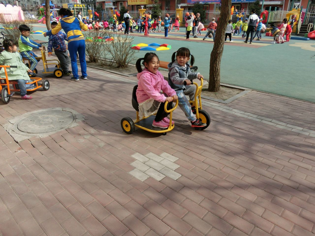 今日我园新进户外器材十余件,供孩子们户外运动时玩耍。